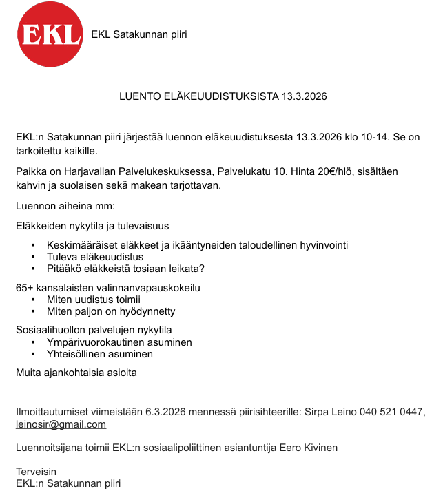 14.10.2023 Koulutustilaisuus eläkkeelle jäämisestä