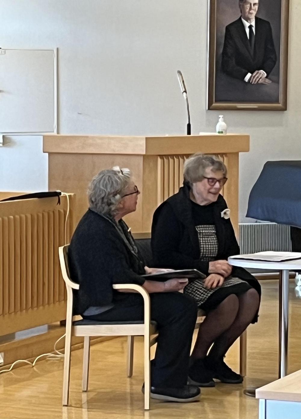 Huittisista tilaisuuteen saapuneet Eila Heinilä ja Eeva Kaplas esittivät hauskan sketsiesityksen kahden jo iällä olevan koulutoverin kohtaamisesta ja kouluaikojen muistelusta. Sketsi herätti paljon naurua ja aplodeja, ja se toi esiin monia tuttuja ja nostalgisia hetkiä, joihin monet osallistujat pystyivät samaistumaan. Heinilän ja Kaplaksen esitys oli yksi päivän kohokohdista, ja se toi tapahtumaan iloa ja keveyttä.